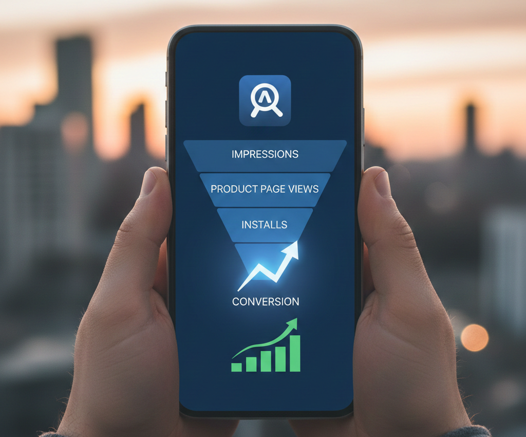 ASO directly influences the final two stages of the funnel. Keywords and categories drive impressions, but conversion depends on what users experience on the product page. High impressions paired with low installs signal a mismatch between user expectations and perceived value.