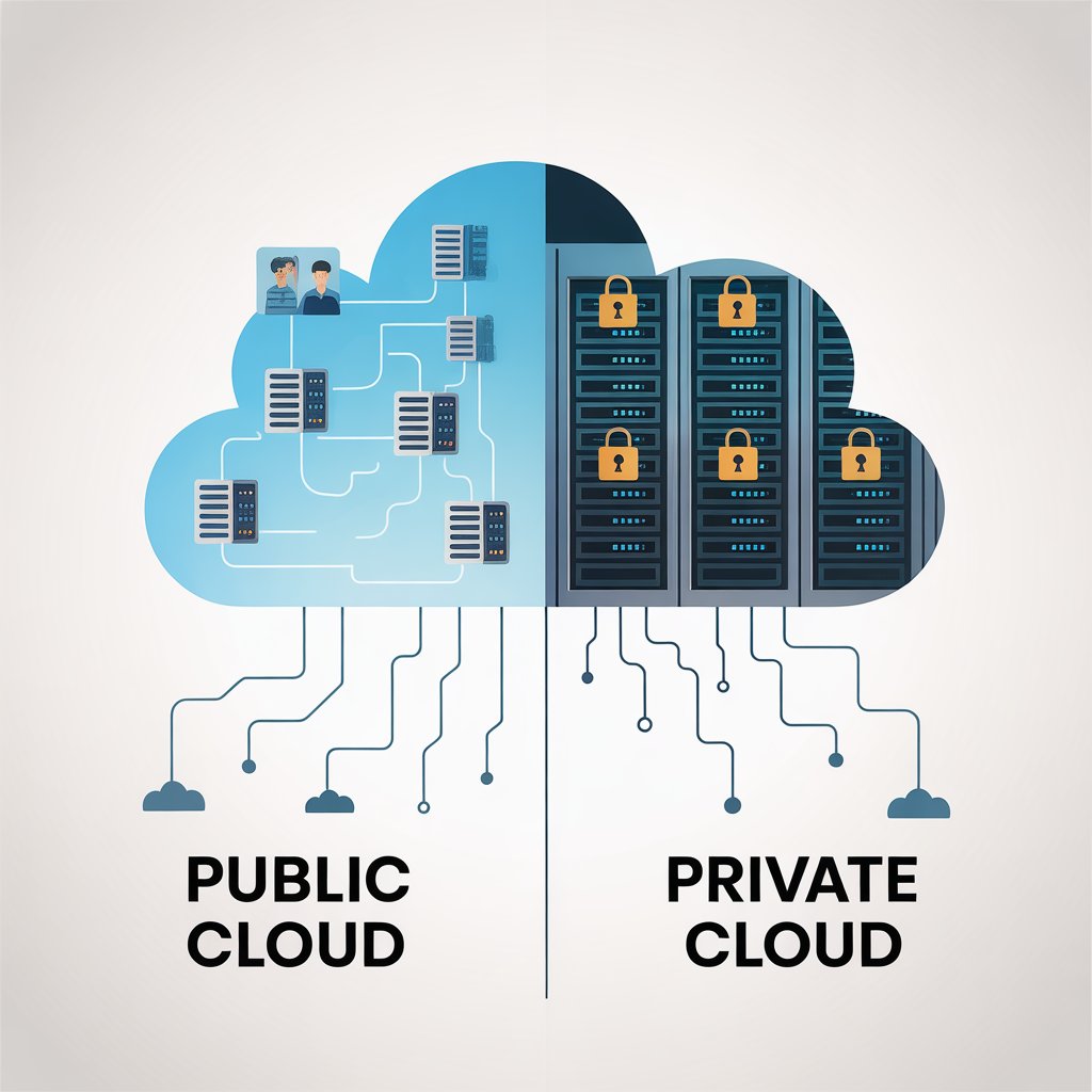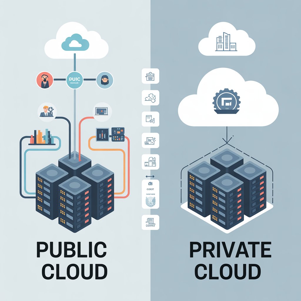 The simplest way to put it is ownership and sharing. Public cloud services are owned and operated by a third-party provider and their resources (servers, storage, etc.) are shared among multiple users over the internet. Private cloud, on the other hand, is dedicated solely to one organization, either hosted on-site or by a third-party provider and with exclusive access.