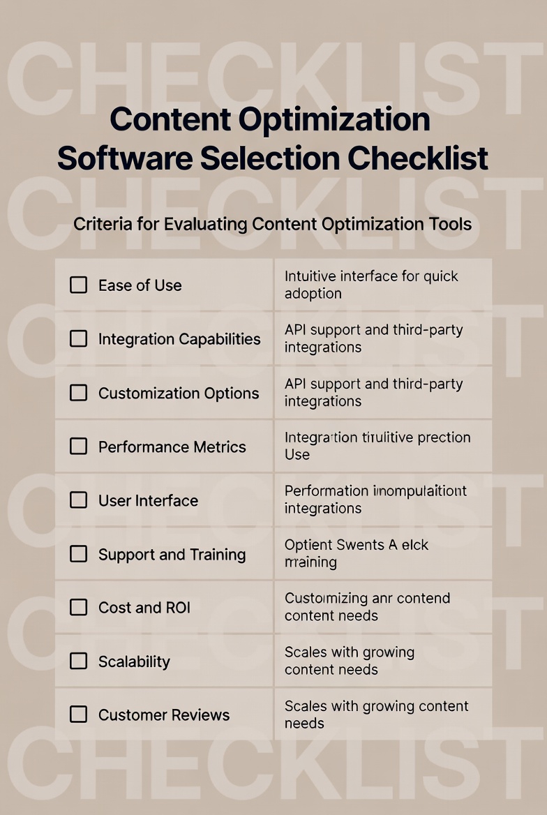 This checklist is your handy guide to choosing the right content optimization software. It helps you figure out what features really matter and how to compare different tools so you can boost your SEO effectively.
